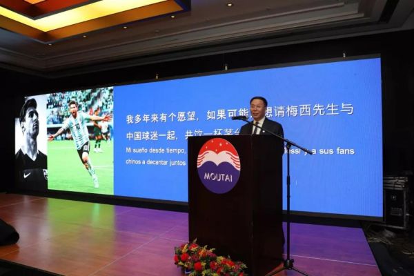茅台集团党委书记、董事长、总经理李保芳在致辞中表示:“除了马拉多纳,我们对阿根廷的印象,还包括遍布中国大街小巷的切·格瓦拉头像文化衫,包括长发飘飘的战神巴蒂斯图塔,当然还有伟大的梅西先生的每一次出场,都让很多中国球迷疯狂。我多年来有个愿望,如果可能,想请梅西先生与中国球迷一起,共饮一杯茅台酒。最好的朋友值得最好的酒。这是我们渴望将茅台酒推介给各位的原因。”
