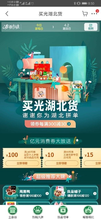 4月1日起,在京东APP搜索“春雨行动”、打开京喜APP,邀请社会各界一起来买湖北货,感恩为我们负重前行的湖北人民!