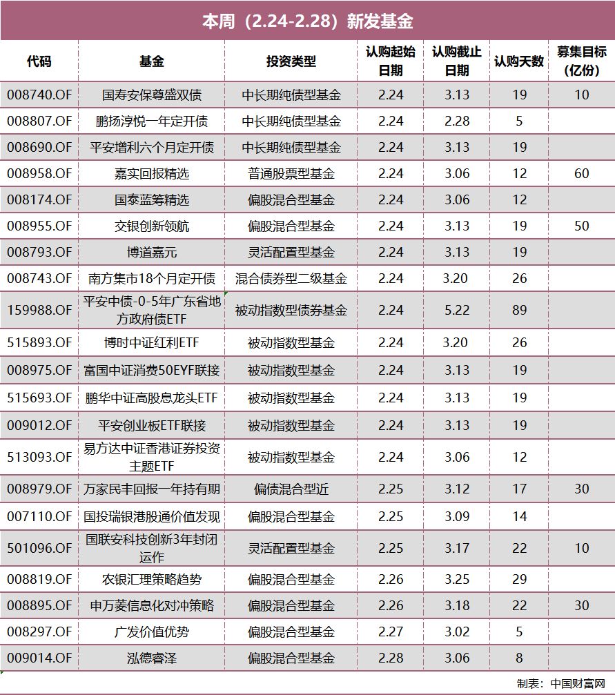本周(2.24-2.28)还有多只具备爆款潜质的新基金进入市场发行,包括博道基金旗下博道嘉元混合基金,拟任基金经理是有20年从业经验的老将张迎军;交银施罗德基金旗下交银创新领航,拟任基金经理是郭斐,其2018年6月开始管理的交银经济新动力混合的回报率达120.33%。