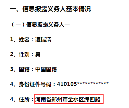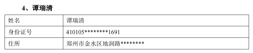 根据云铝股份的公告来看,谭瑞清居住在郑州市金水区地润路,身份证号前6位为“410105”: