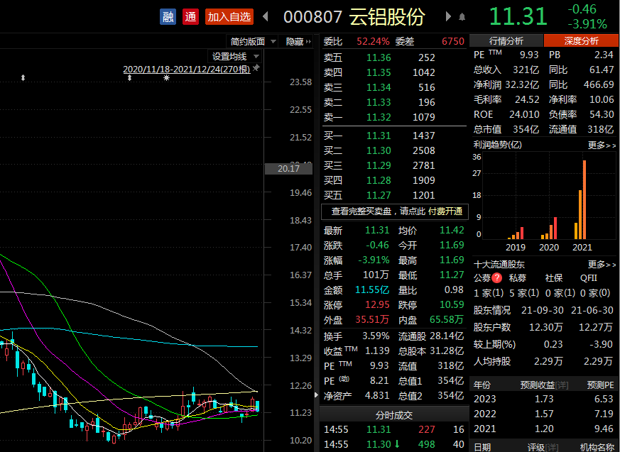 按照云铝股份目前最新11.31元的股价计算,本次参与云铝股份定增的投资者账面上已经浮盈28%。